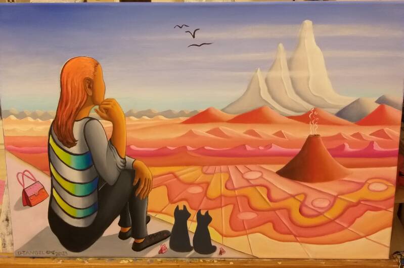 Mein Name ist Doris Tangel, geboren 1954 in Frankfurt am Main, ich besuchte keine Universität, aber malte und sang von Anfang an. Ich kann zwar nicht malen, aber ich tue es jeden Tag, haha. Ohne funktioniert mein Leben einfach nicht. Es heilt mich und es gibt mir inneren Frieden, wenn die Stürme des Lebens über und in mir toben. Ich kann damit Trauma verarbeiten und mich seelisch weiter entwickeln und auch ansehen, was unbewusst in mir abgeht, z.B. Wut oder Angst oder Sehnsucht.